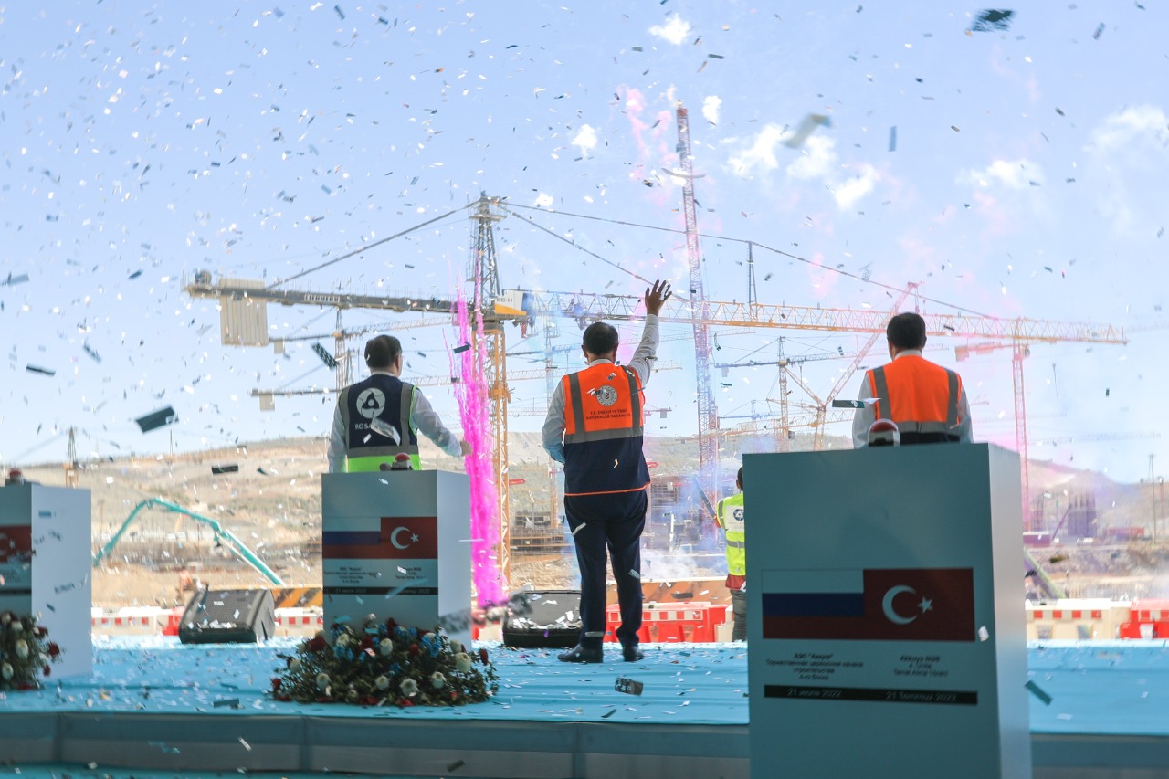 ومن ناحيته، عقب المدير العام لروساتوم أليكسي ليخاتشوف في كلمة ألقاها خلال الحدث قائلًا: «يعد مشروع أكّويو مشروعا خارجيا رائدا بالنسبة لشركة روساتوم الحكومية وهو أكبر مشروع إنشائي تنفذه الشركة، واعتبارا من اليوم سيجري بناء مرافق البنية التحتية النووية في جميع وحدات الطاقة الأربع بشكل تزامني، نرى أن قسما هائلا من أعمال إنشاء محطة أكويو قد أنجز بالفعل، ويمكنني أن أؤكد لكم أن التعاون المثمر بين شركات بلدينا واهتمام قطاع الصناعة التركي وإنشاء سلسلة توريد فعالة هي العوامل التي تجعل مشروعنا نموذجا للتفاعل بين روسيا وتركيا، ووالجمهورية التركية التي اتخذت قرارًا لصالح تطبيق التقنيات النووية الروسية الحديثة والموثوقة مهدت أرضية لتوفير الاستقرار في قطاع الطاقة طيلة عقود مستقبلية».