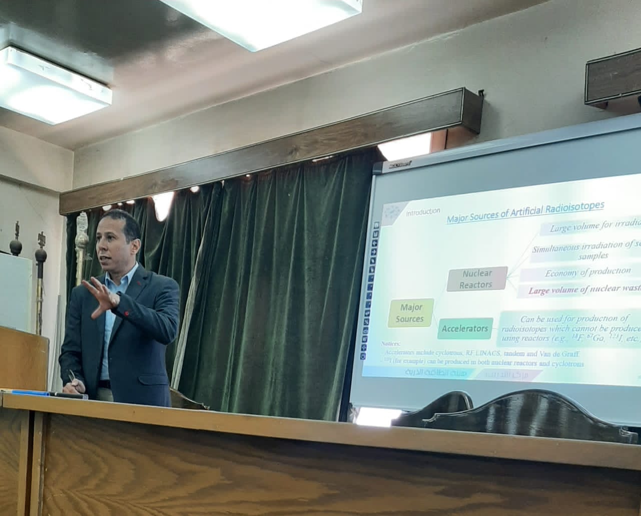وقد شمل البرنامج التدريبي جزء نظرياً متخصص عن تعريف النشاط الاشعاعي، القياسات والكواشف الاشعاعية، أسس الوقاية من الاشعاع، الكيمياء النووية، انتاج الشنط المجفدة واستخداماتها في التصوير الاشعاعي، انتاج الاجسام المضادة وتطبيقاتها في مجال الاشعاع وعلاج الأورام، انتاج النظائر المشعة، الصيدلة النووية وتطبيقاتها الطبية، التطبيقات الاشعاعية للتكنولوجيا الحيوية والجزيئية، الحوادث النووية.