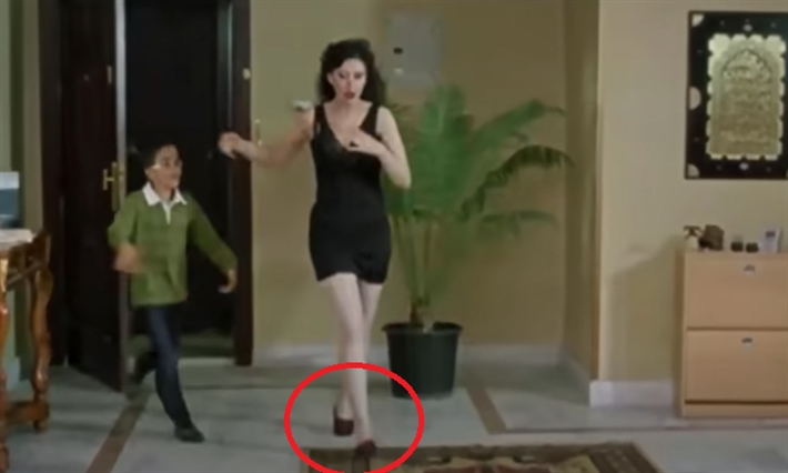 وفي المشهد الذي يليه تظهر وقدماها عاريتين رغم عدم إقدامها على هذه الخطوة، مما أثار تعجب المشاهدين.