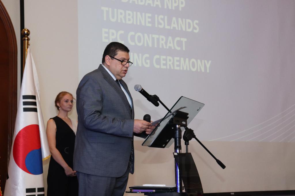 ومن ناحيته، أكد الدكتور أمجد سعيد الوكيل رئيس مجلس إدارة هيئة المحطات النووية لتوليد الكهرباء أن جمهورية مصر العربية ودولة كوريا الجنوبية يتمتعان بتاريخ كبير من التعاون المتبادل، لذا فإن توقيع العقد مع شركة كوريا للطاقة المائية والنووية ومساهمتهما كمقاول من الباطن في مشروع إنشاء محطة الضبعة النووية هو امتداد لذلك التاريخ السابق ومبادرة عظيمة.