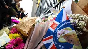 وحشد عشرات الآلاف عند قصور ملكية، وذلك منذ وفاة الملكة إليزابيث خلال الأيام الماضية، وذلك لإبداء الاحترام والتعازى ووضع الزهورالمتنوعة على نعشها.
