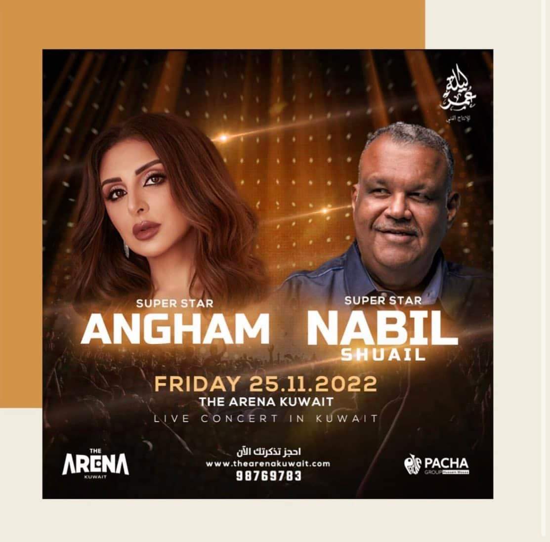 وتحيى بعد ذلك حفل على مسرح الأرينا كويت في الكويت يوم الجمعة الموافق 25 نوفمبر، ويصاحبها في حفلها المطرب نبيل شعيل.