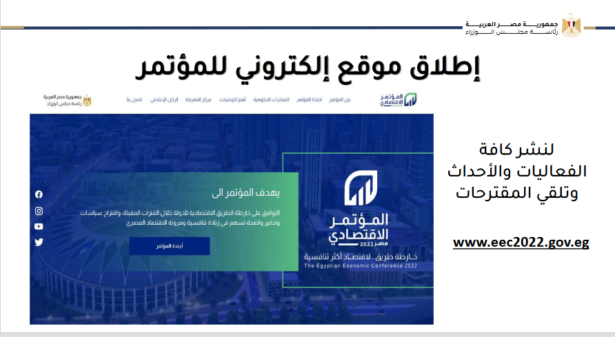 وتنتهي فعاليات المؤتمر الاقتصادي 2022 بالجلسة الختامية للإعلان عن أبرز نتائج وتوصيات المؤتمر الاقتصادي والمبادرات الحكومية بحضور الصحف ووكالات الأنباء المحلية والعالمية.