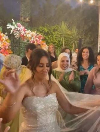 وانتشرت صور لها من حفل الزفاف وهي ترقص مع الحضور وزوجها.