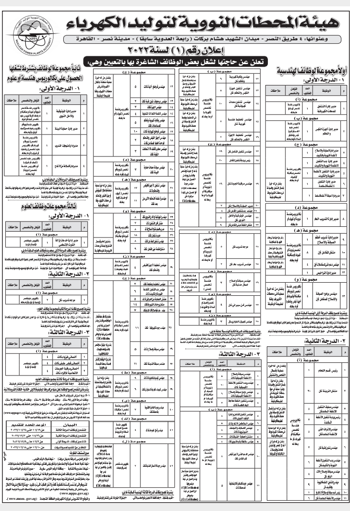 أعلنت هيئة المحطات النووية لتوليد الكهرباء عن حاجتها لشغل وظائف جديدة لمختلف التخصصات الهندسية والعلمية.