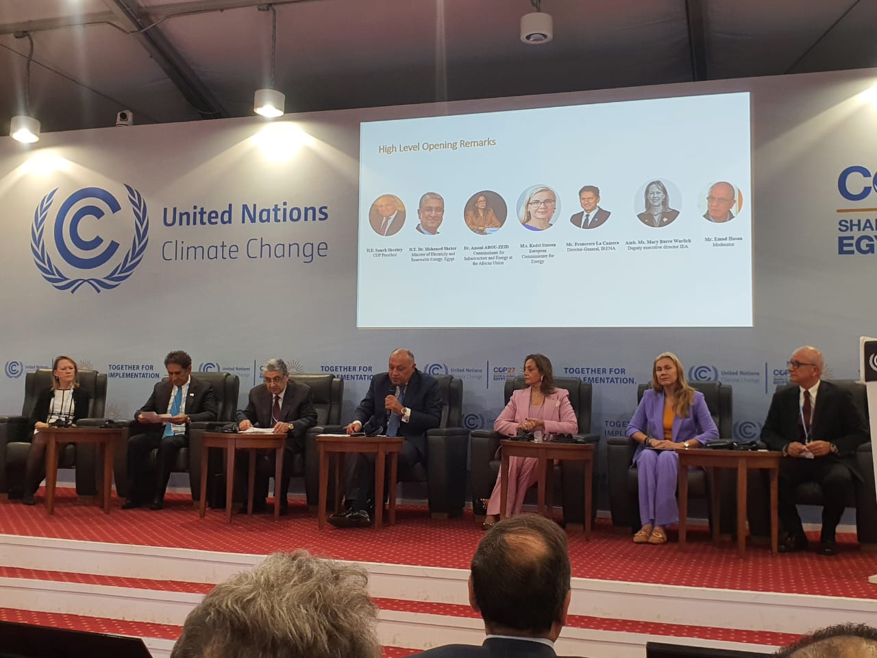 ألقى الدكتور محمد شاكر وزير الكهرباء والطاقة المتجددة كلمة نيابة عن الحكومة المصرية، في يوم الطاقة والذي يعقد على هامش مؤتمر أطراف اتفاقية المناخ في دورته الـ27 والذي تستضيفه مصر على أرضها نيابة عن القارة الأفريقية.