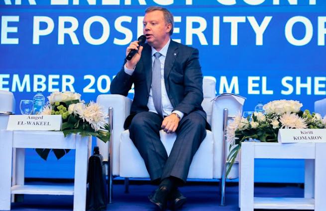 وخلال طاولة مستديرة نظمتها هيئة المحطات النووية لتوليد الكهرباء في الجناح المصري تم مناقشة دور مشروع إنشاء محطة الضبعة للطاقة النووية في تطوير مصادر الطاقة النظيفة والمستدامة في مصر، وجرى الحدث بمشاركة رؤساء عدد من المؤسسات النووية الأساسية في مصر والمنطقة إلى جانب المديرة العامة للرابطة النووية العالمية (WNA) سما بيلباو إي ليون وكيريل كوماروف والذي أشار في سياق إجابته على سؤال حول مساهمة محطة الضبعة النووية في تحقيق الأهداف الـ 17 للتنمية المستدامة للأمم المتحدة، إلى أن تنفيذ المشروع سيكون له تأثير مناخي إيجابي كبير بما في ذلك منع انبعاث ما يصل إلى 15 مليون طن من ثاني أكسيد الكربون سنويا بالإضافة إلى تطوير الموارد البشرية من خلال خلق الآلاف من الوظائف المؤهلة تأهيلا عاليا في القطاع النووي والصناعات ذات الصلة، والتنمية الديناميكية للبنية التحتية في منطقة الإنشاء بأكملها.