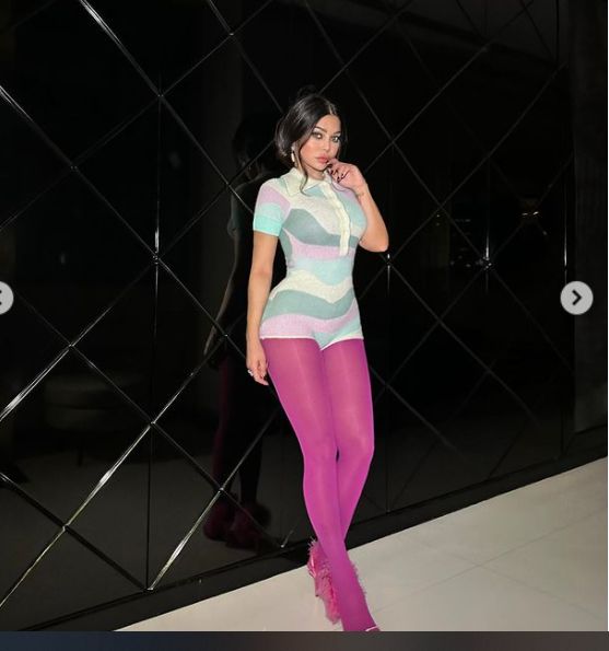 وظهرت الفنانة هيفاء وهبي بإطلالة مثيرة وجريئة، مرتدية مايوه وتحته شراب باللون البامبي.