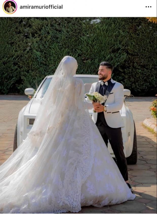 وظهر عموري في الصور، مرتديًا بدلة تجمع بين اللونين الأسود والأبيض، وتقف أمامه عروسته، وأنهالت عليه المباركات.