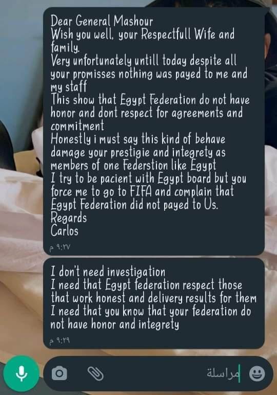 وهذا يدل على أن الاتحاد المصري لا يحترم الاتفاقات والالتزامات.