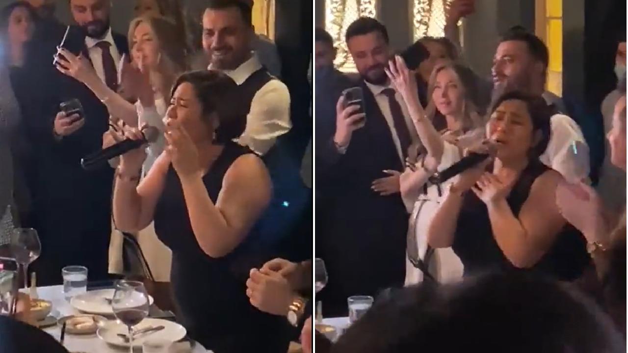 وظهرت شيرين، خلال الفيديو، بفستان أسود أظهر زيادة وزنها، وكانت تغني بحرارة لتشجيع الحاضرين لها.