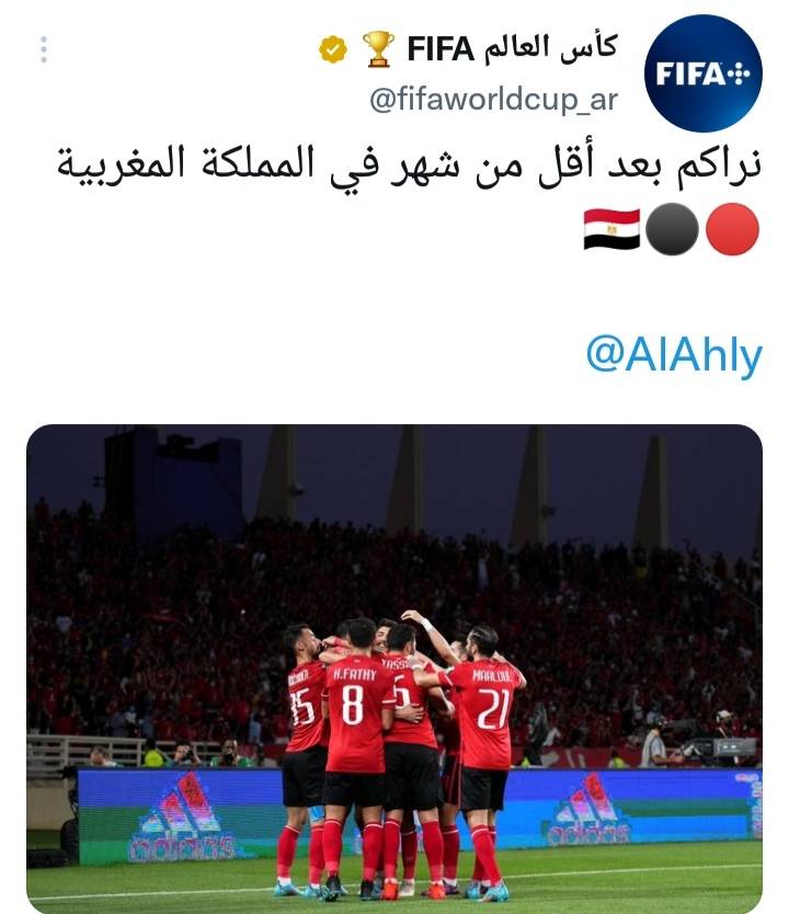 وكتب الحساب الرسمي "فيفا" على موقع التدوينات القصيرة "تويتر": "نراكم بعد أقل من شهر في المملكة المغربية".