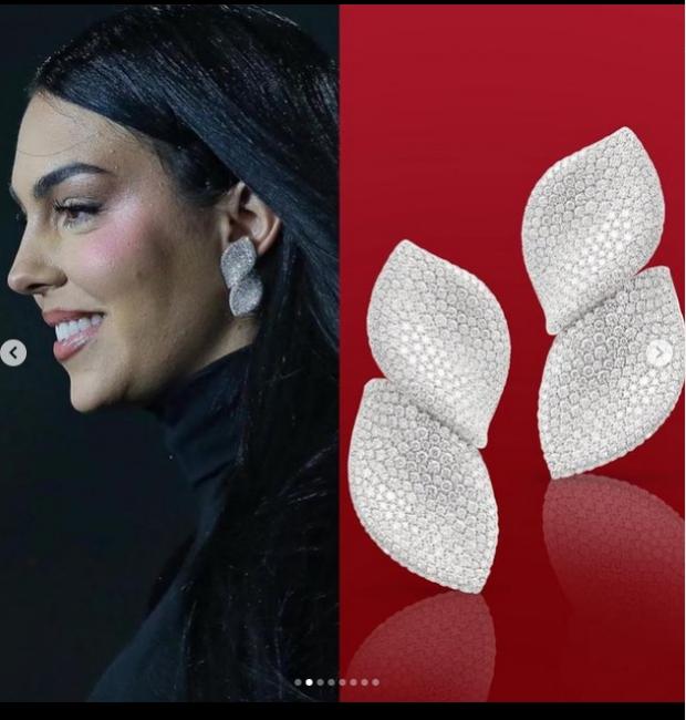 وتزينت جورجينا بأقراط ألماسية وصل سعرها 50.515 دولار أمريكي، أي ما يقرب من مليون ونصف المليون جنيه مصري، ما أثار الدهشة بين متابعيها.