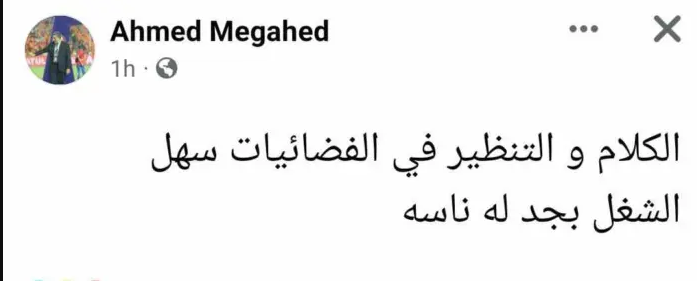 وكتب أحمد مجاهد عبر حسابه الشخصي بموقع التواصل الاجتماعي” فيسبوك”: “الكلام والتنظير في الفضائيات سهل، الشغل بجد له ناسه”