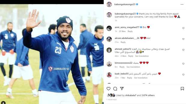 وكتب "كاسونجو" عبر حسابه الشخصي على "إنستجرام": "شكرا لعائلتي الكبيرة من مصر الزمالك، على قلقكم، أنا بخير جدا بفضل الله".