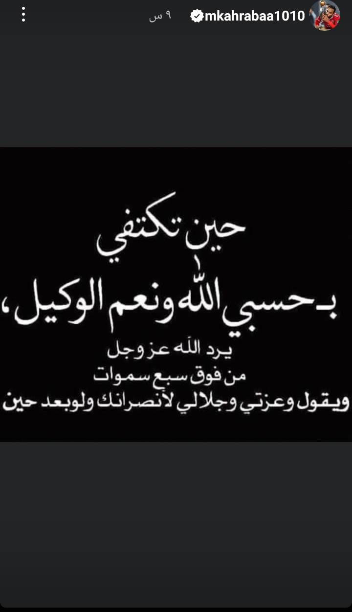 وكتب كهربا عبر حسابه الرسمي على إنستجرام: "حين تكتفي بحسبي الله ونعم الوكيل، يرد الله عز وجل من فوق سبع سموات ويقول وعزتي وجلالي لأنصرنك ولو بعد حين".