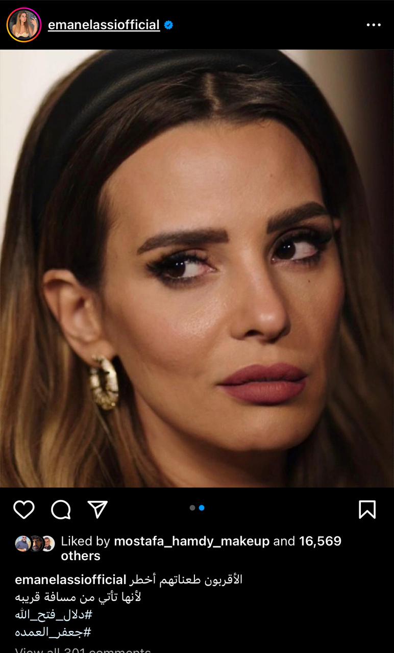 وكتب إيمان العاصي، في منشورها: "الأقربون طعناتهم أخطر لأنها تأتي من مسافة قريبة".