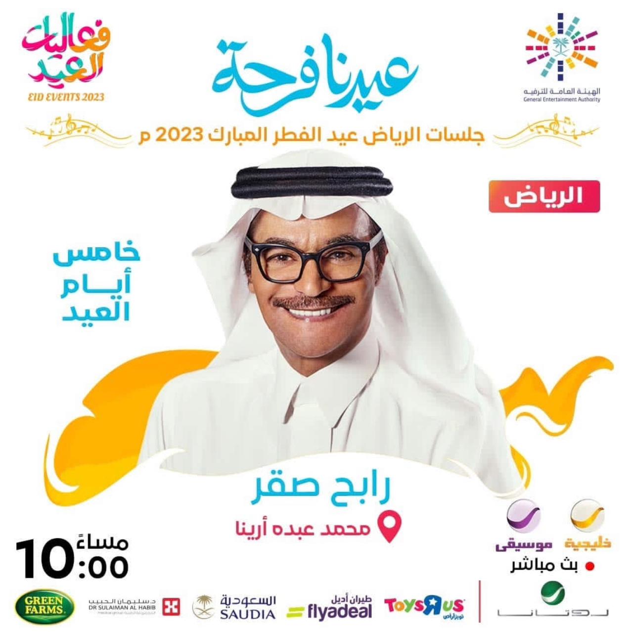 يستعد الفنان رابح صقر، مساء اليوم لإحياء حفلا غنائيا كبيرا، وذلك على مسرح أرينا بالعاصمة السعودية الرياض، في تمام الساعة العاشرة، ضمن سلسلة حفلات عيد الفطر المبارك.