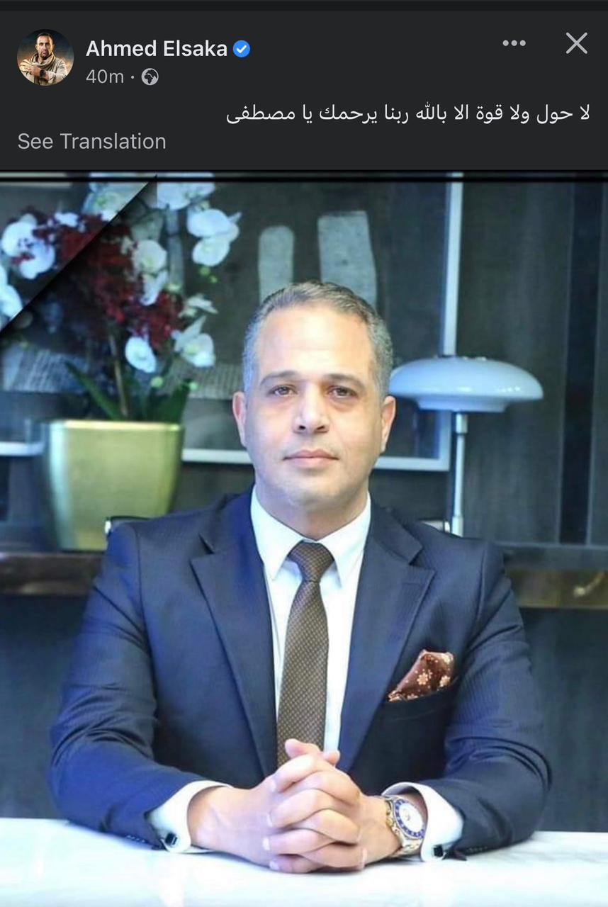 ونعى النجم أحمد السقا قائلا: "‏لا حول ولا قوة الا بالله ربنا يرحمك يا مصطفى".