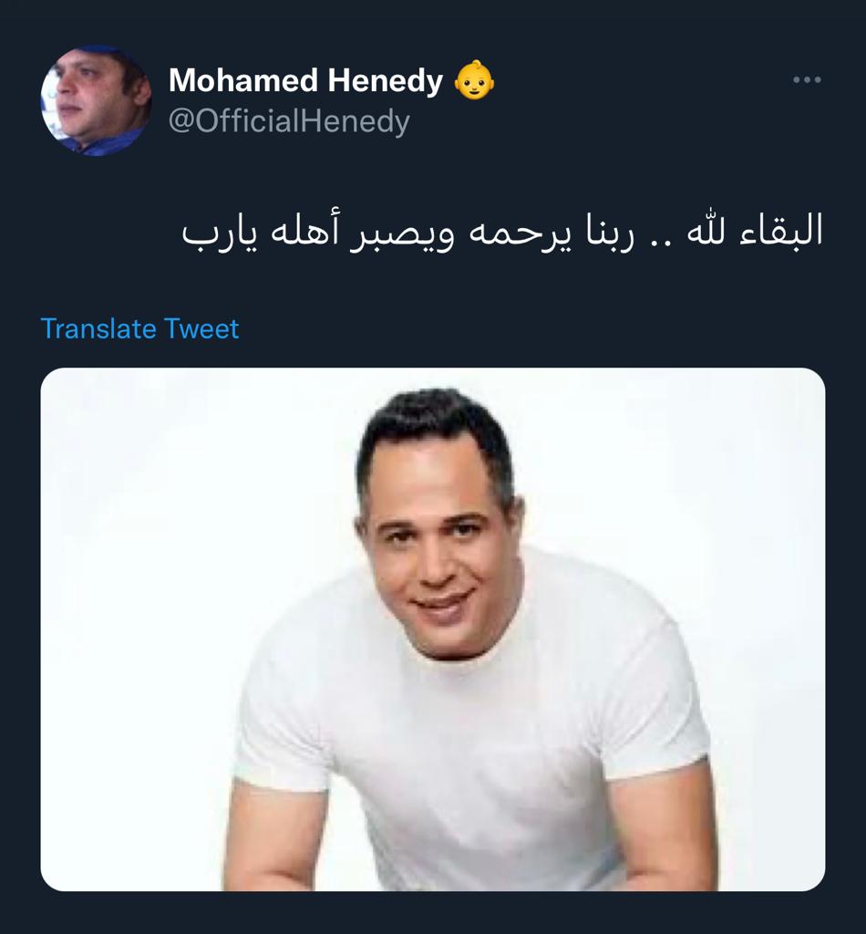 وكتب النجم محمد هنيدي: البقاء لله .. ربنا يرحمه ويصبر أهله يا رب.