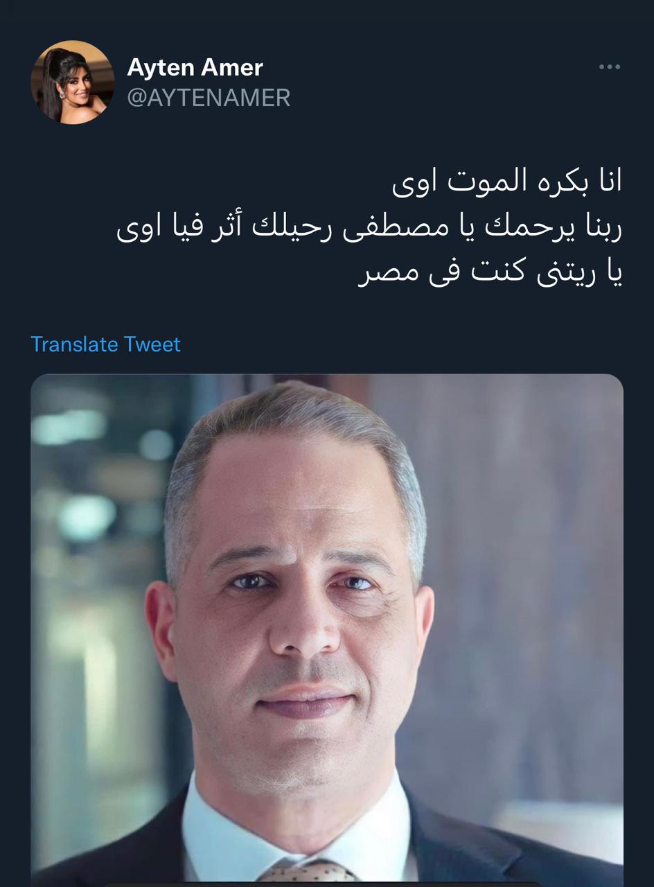 وكتبت آيتن: "أنا بكره الموت أوي، ربنا يرحمك يا مصطفى رحيلك أثر فيا، يا ريتني كنت في مصر".