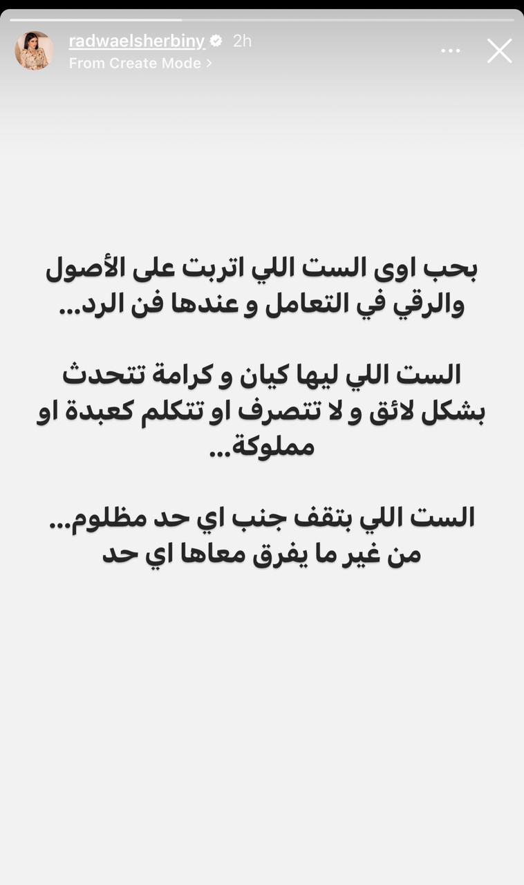 وكتبت رضوي الشربيني: "بحب أوي الست اللي اتربت على الأصول والرقي في التعامل وعندها فن الرد".