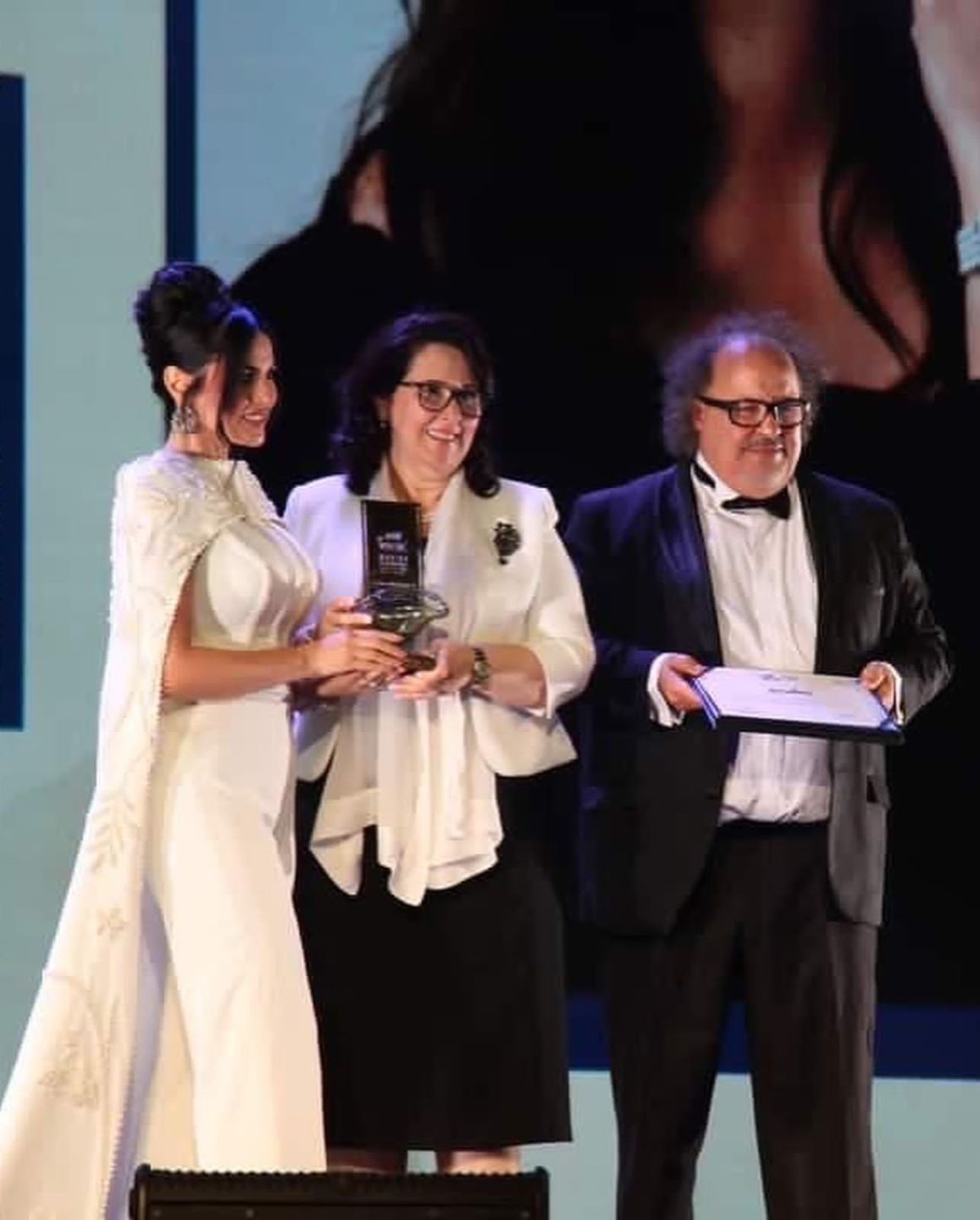 وتسلمت درة التكريم لتغادر مباشرة الي المملكة العربية السعودية، لارتباطها بعرض مسرحيتها حتى لا يطير الدكان هناك.