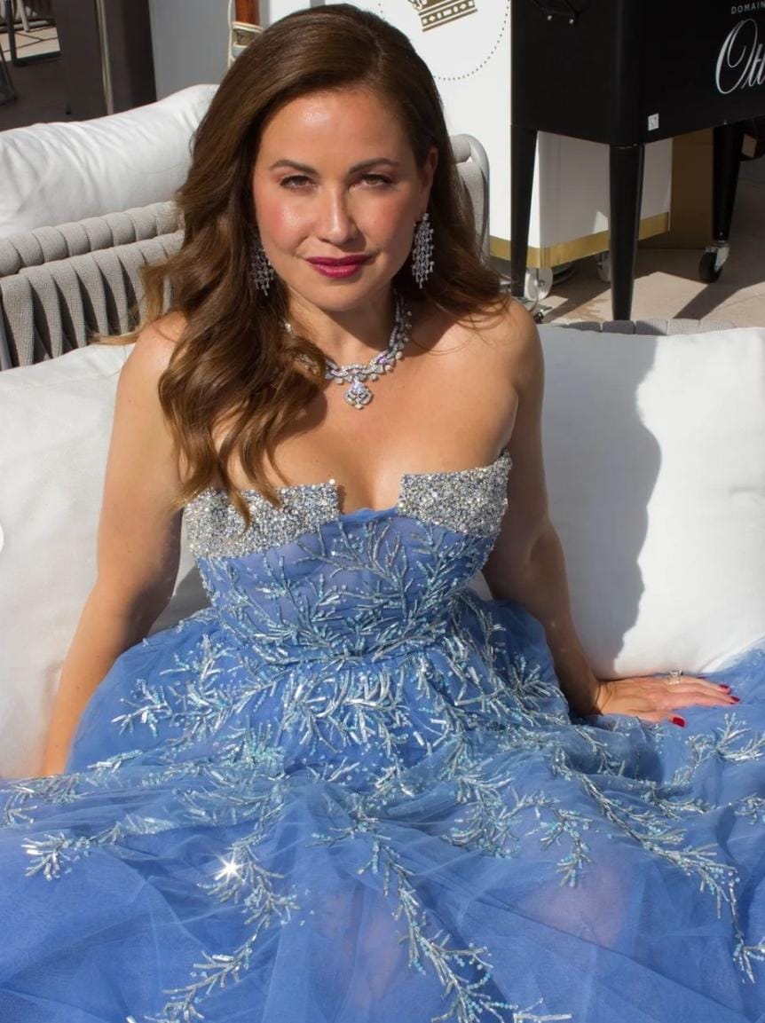 بفستان أزرق مكشوف ومجوهرات ساحرة.. ريا أبي راشد تلمع بمهرجان كان 2022