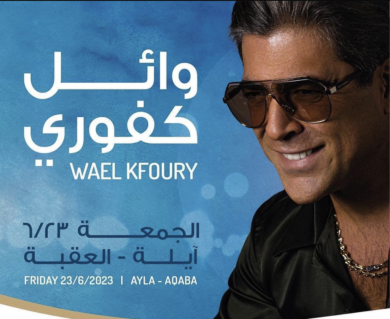 يستعد النجم اللبناني وائل كفوري، لإحياء حفل غنائي كبير، وذلك يوم الجمعة الموافق ٢٣ يونيو، فى مدينة العقبة بالأردن ، برفقة فرقته الموسيقية.