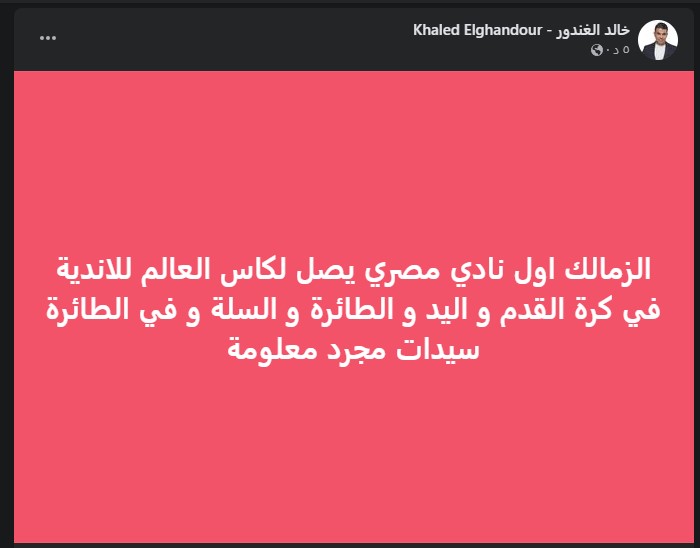وكتب: “الزمالك أول ناد مصري يصل لكأس العالم للأندية في كرة القدم واليد والطائرة والسلة وفي الطائرة سيدات مجرد معلومة”.