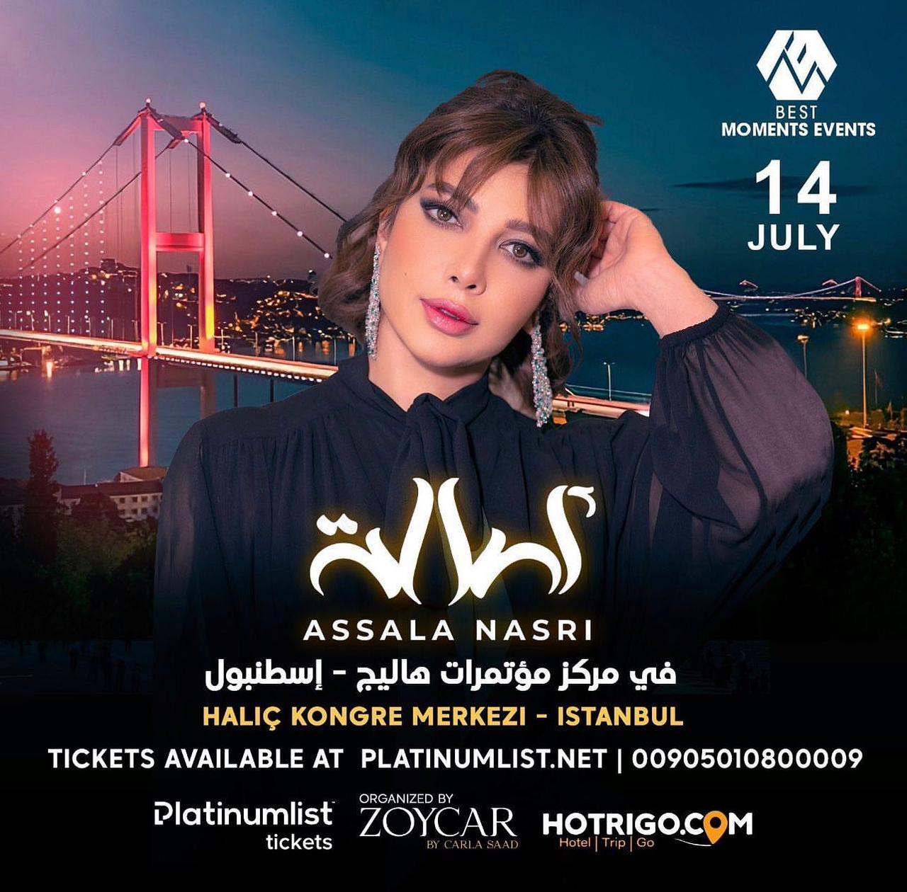 تستعد النجمة أصالة لإحيائها حفلا غنائيا كبيرا، يوم 14 يوليو، في مركز مؤتمرات هاليج، بمدينة إسطنبول برفقة فرقتها الموسيقية.