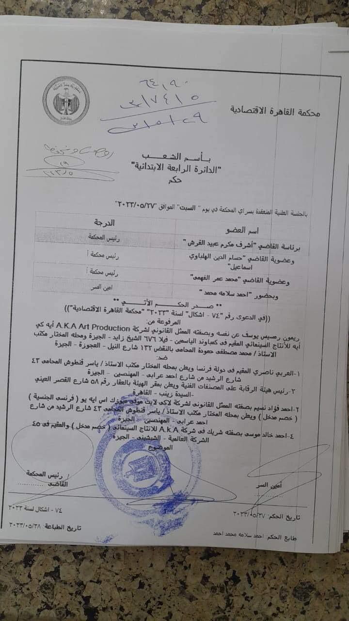 أصدرت المحكمة الاقتصادية، حكما قضائيا نهائيا يحمل رقم 74 لسنة 2023 لصالح الفنان الفرنسي بي بي ناصري، بوقف عرض فيلم رمسيس باريس.