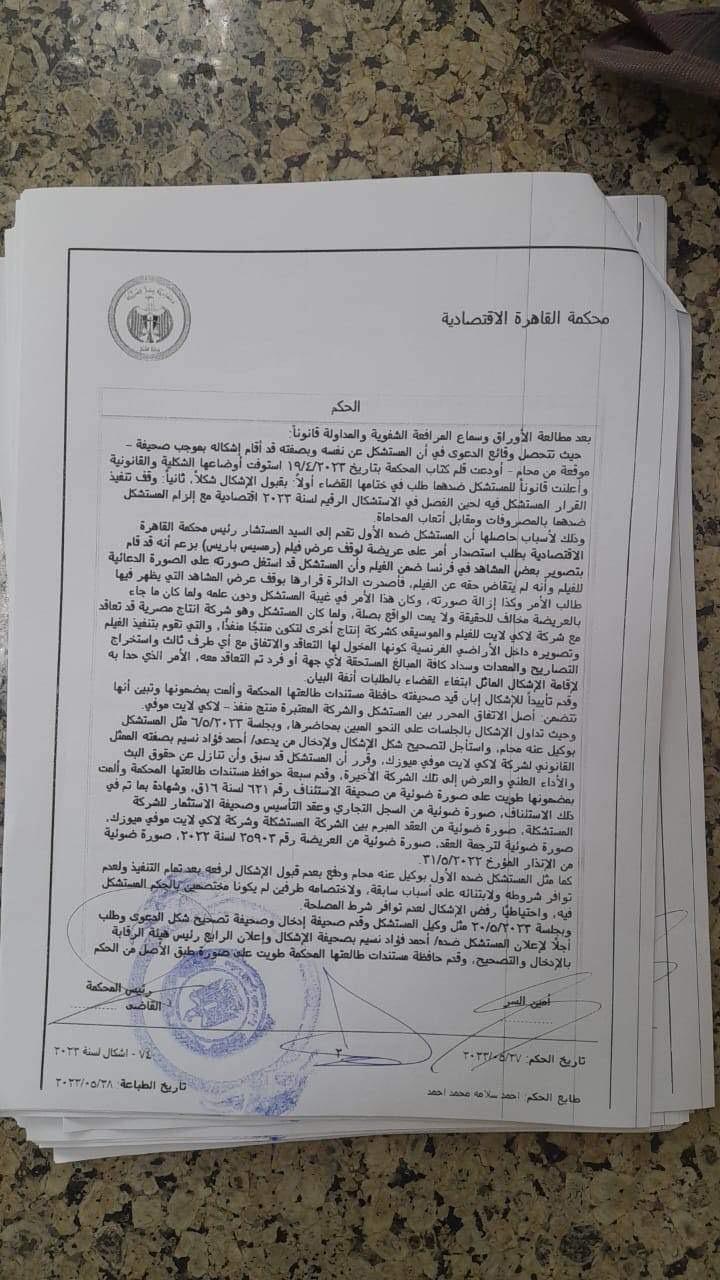 وجاء في أسباب الحكم التي أودعتها هذه المحكمة بتاريخ 27/3/2023 طالبًا في ختامها الحكم أولًا بقبول التظلم شكلا وفي الموضوع بإلغاء القرار الصادر في الأمر الوقتي رقم 25 لسنة 2023 أوامر وقتية المحكمة الاقتصادية، والقضاء مجددا بوقف نشر وعرض فيلم رمسيس باريس من إنتاج شركة AKA للإنتاج الفني بجميع دور العرض وعدم إصدار أية تصاريح للشركة أو الفيلم من أي من الجهات المعنية بإصدار التصاريح مع إلزام المعلن إليهما بالمصاريف ومقابل أتعاب المحاماة.