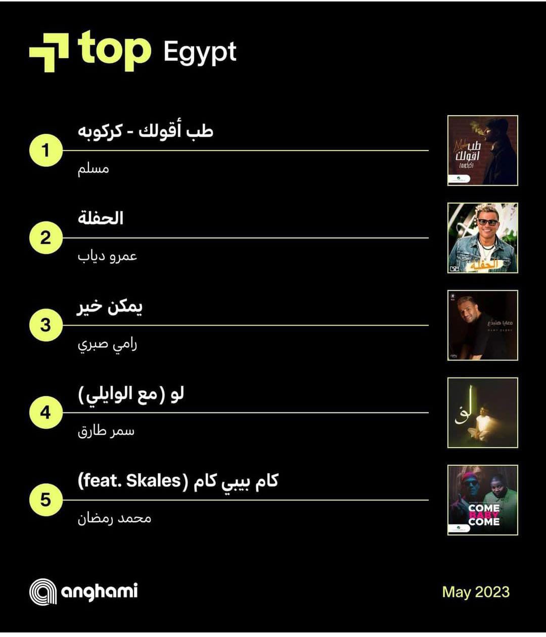 قائمة أنغامي لشهر مايو .. عمرو دياب ومسلم في الصدارة