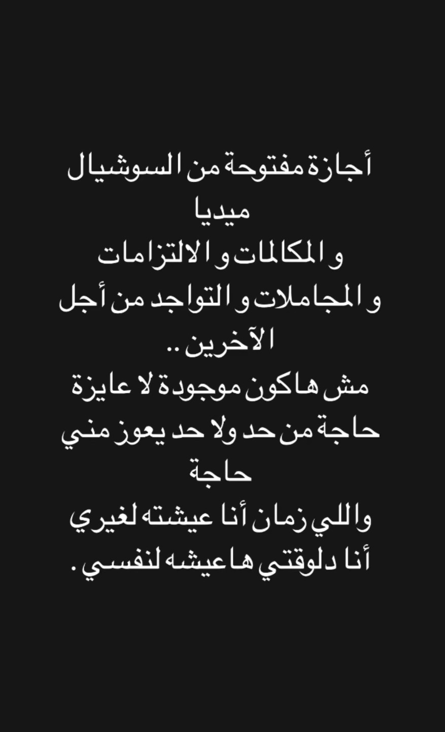 وكتبت ميرهان: "إجازة مفتوحة من الـ سوشيال ميديا والمكالمات والالتزامات والمجاملات والتواجد من أجل الآخرين، مش هكون موجودة ولا عايزة حاجة من حد ولا حد يعوز مني حاجة واللي زمان أنا عيشته لغيري أنا دلوقتي هعيشه لنفسي".