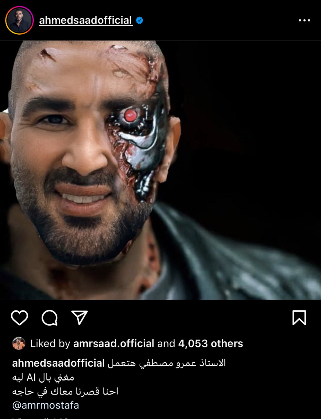 وجه الفنان أحمد سعد، رسالة للملحن عمرو مصطفى، وذلك من خلال حسابه الشخصى على موقع التواصل الإجتماعى "إنستجرام"، قائلا: "أستاذ عمرو مصطفى هتعمل مغني بالـ Ai ليه؟ احنا قصرنا معاك في حاجة؟".