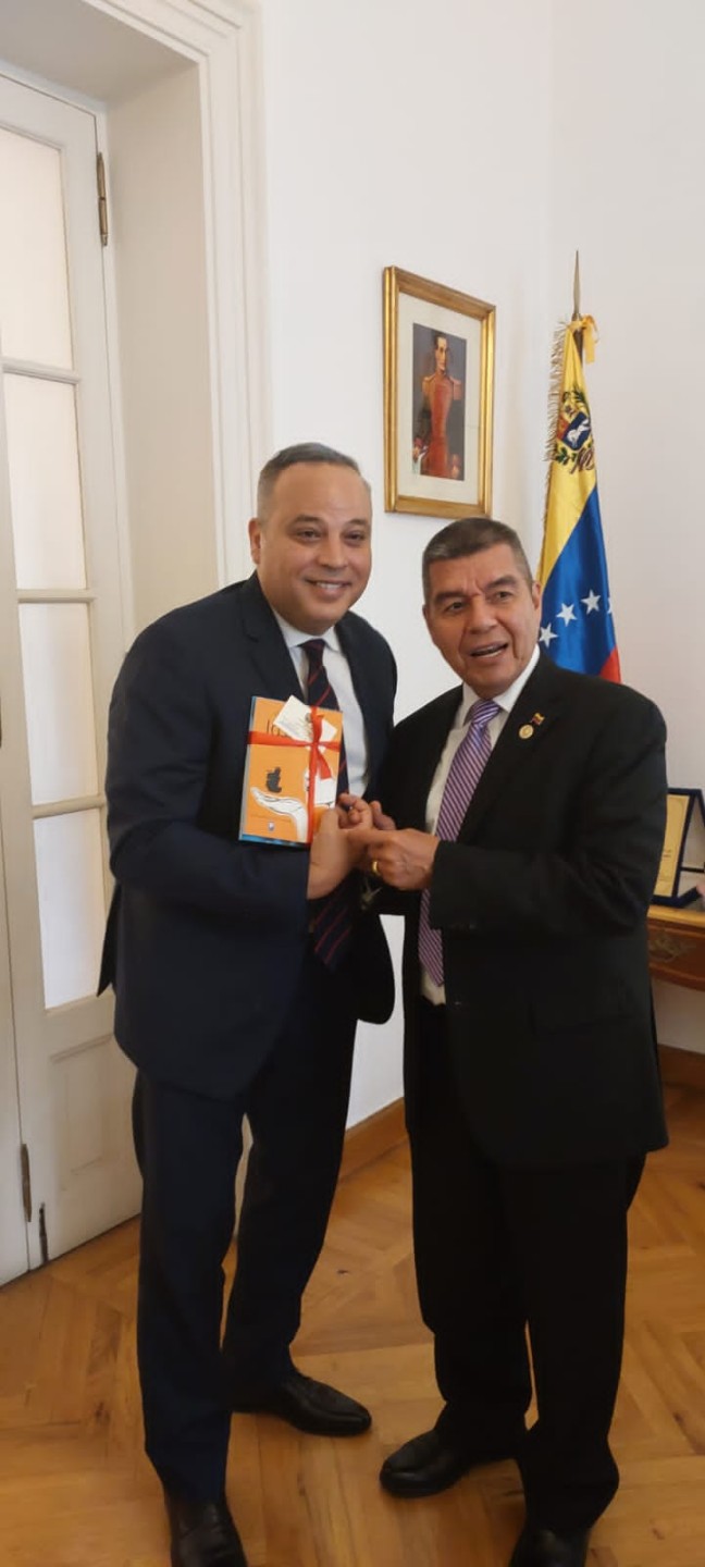 سفير فنزويلا يهدي تامر عبد المنعم كتب وأفلام خاصة بدولته (صور)