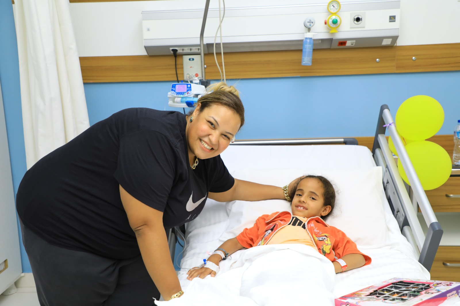وفي جو حافل بالبهجة والطاقة الإيجابية حرصت ويزو على اللعب مع الأطفال وتقديم الهدايا لهم وتبادل الحديث معهم بحسها الكوميدي لمؤازرتهم والتخفيف عنهم في مرحلة علاجهم.