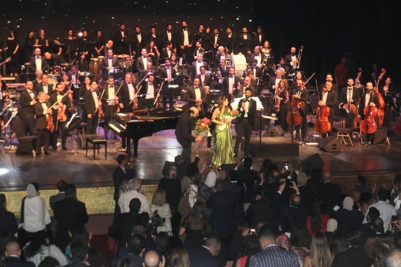 واستهل الحفل بعزف النشيد الوطني المصري على طريقة الموسيقار أسامة الرحباني، قبل أن تشرق شمس هبة طوجي على المسرح بدخولها بأغنية "طلعت يا محلا نورها".