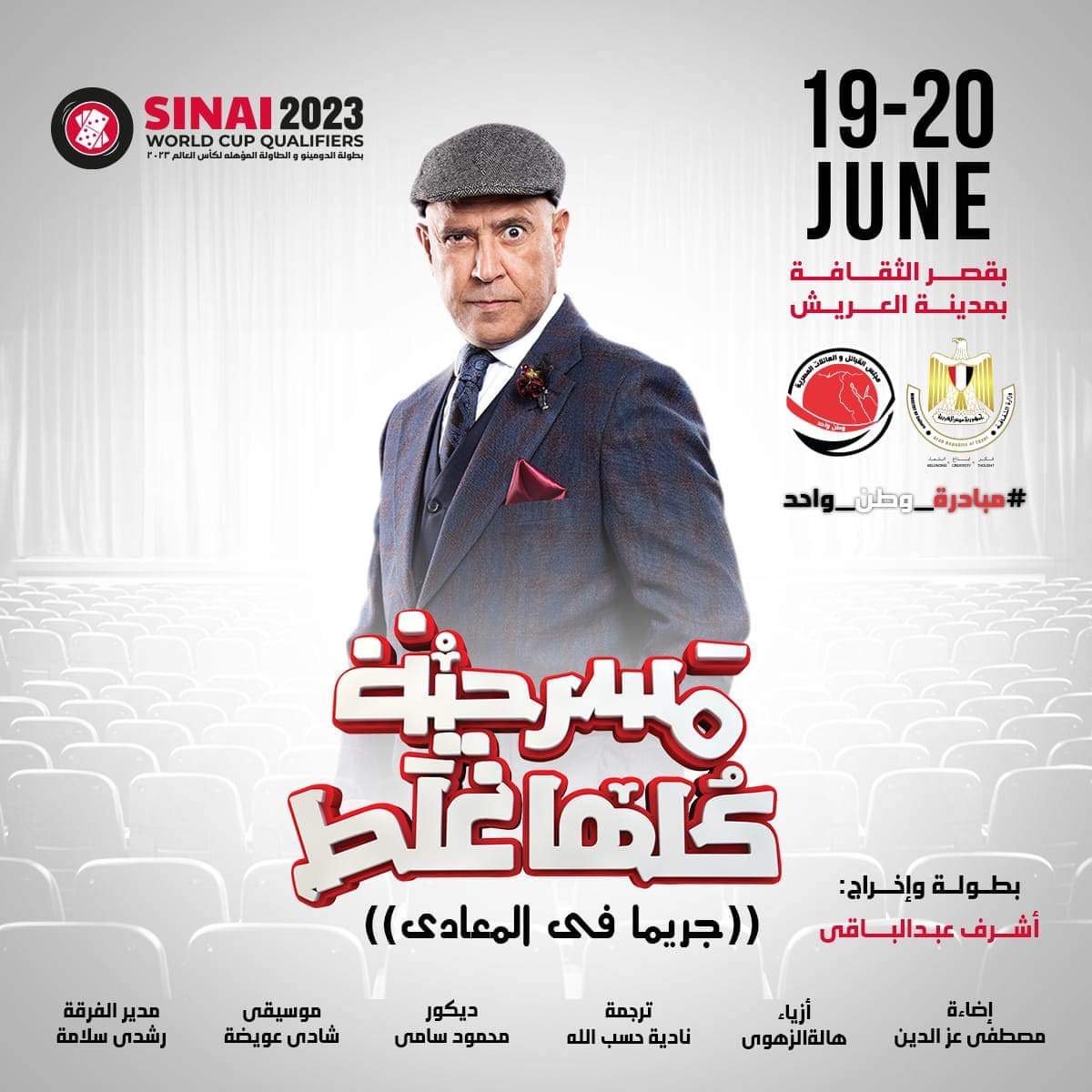 المسرحية سيتم عرضها أيام ١٩ - ٢٠ يونيو بقصر الثقافة بمدينة العريش، وذلك ضمن مبادرة وطن واحد، بعد النجاح الكبير التي حققته المسرحية أثناء عرضها بالقاهرة وبورسعيد والمنيا وأسيوط وجدة والرياض والساحل الشمالي على مدار السنوات الماضية.