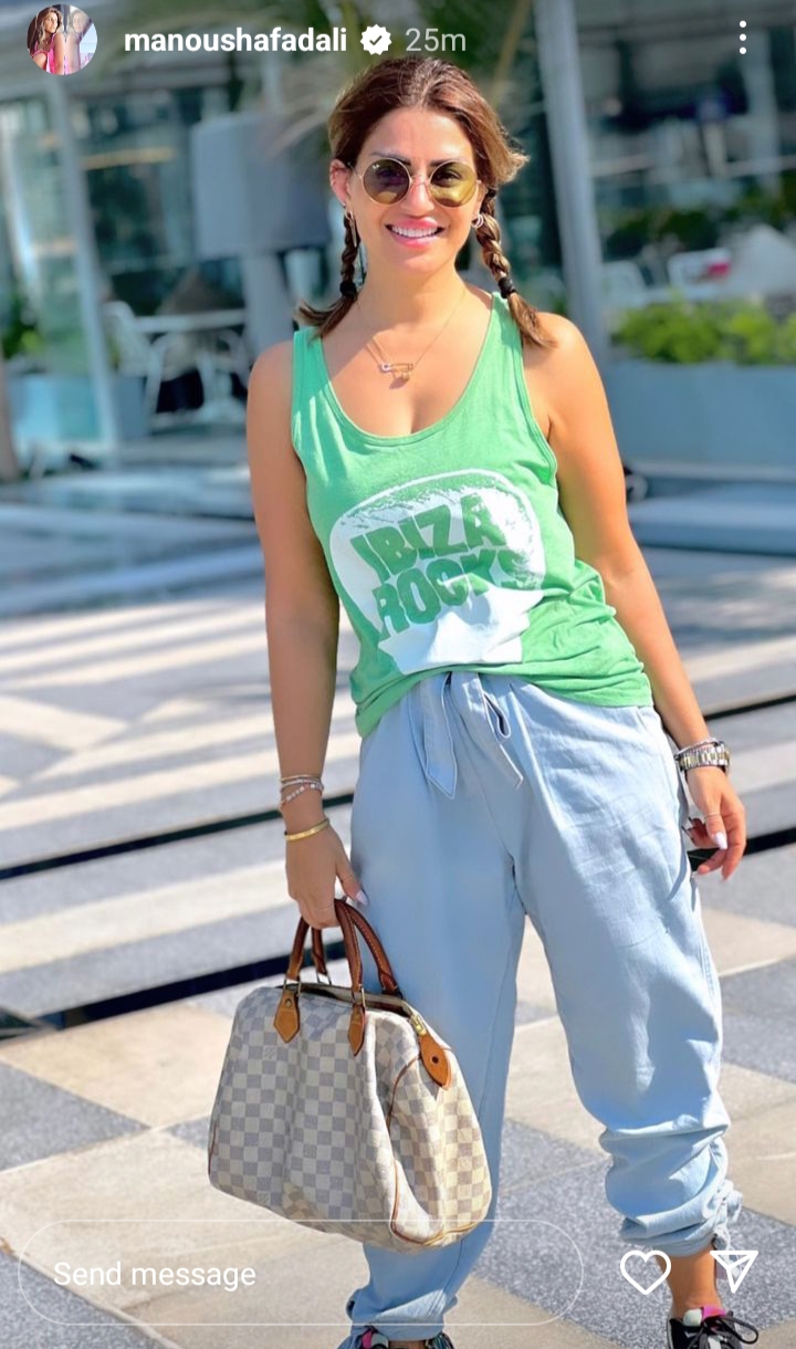 وظهرت منة فضالي في الصورة، بإطلالة كاجوال، وتسريحة شعر ضفيرة.