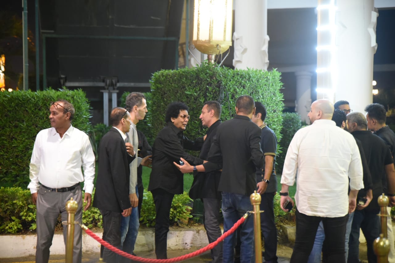 شاهد.. الكينج محمد منير في عزاء الفنان علاء عبد الخالق