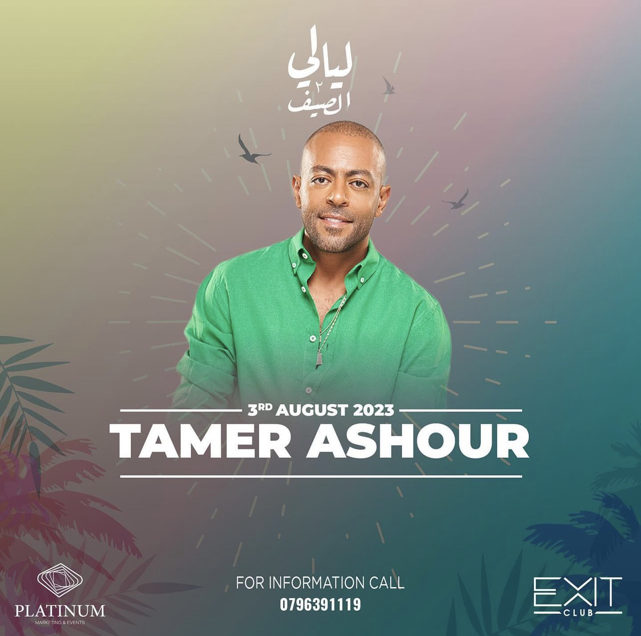 يستعد الفنان تامر عاشور، لإحياء حفل غنائي كبير، ضمن حفلات الصيف وذلك يوم 3 أغسطس، فى الاردن، برفقة فرقته الموسيقية.