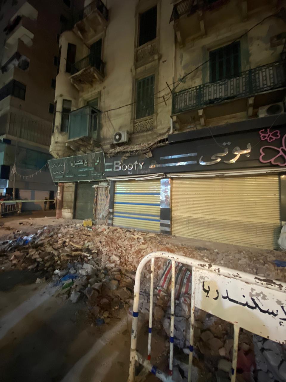 محافظ الإسكندرية التعامل الفوري حادث سقوط بلكونة الدور الثالث والثانى على المارة عقار بشارع مصطفى كامل باكوس حي شرق