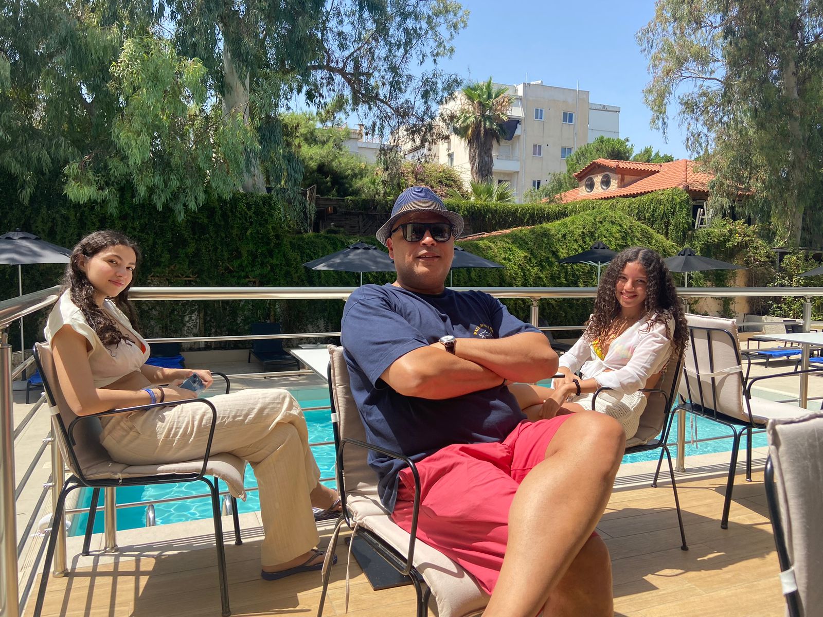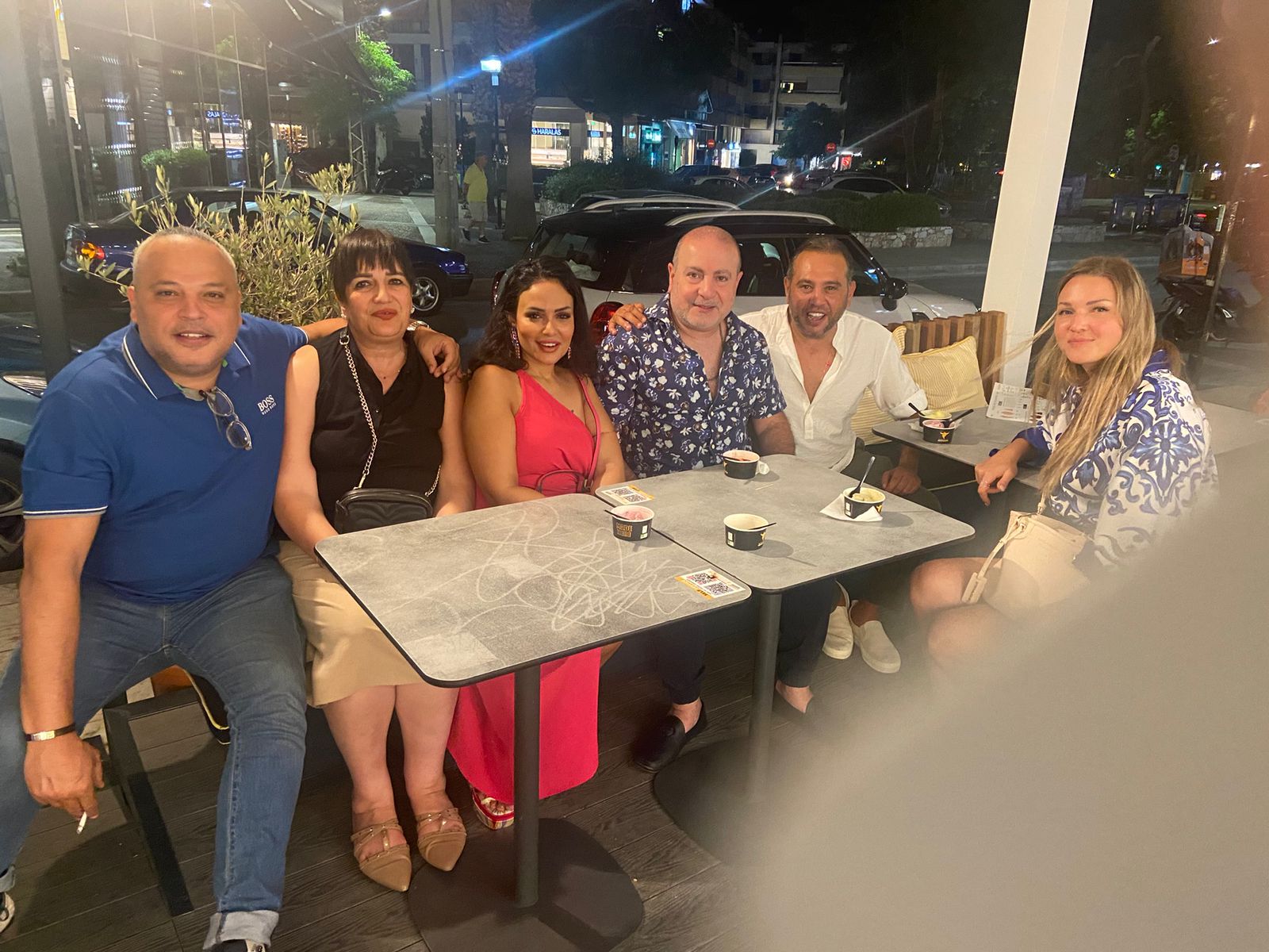 صاحب الفنان تامر عبدالمنعم صديقه المقرب الفنان ورجل السياحة رؤوف عيد بالإضافة إلى ابنتا الفنان تامر عبدالمنعم كرمه وسلمى اللتين يقضيان معه الإجازة السنوية.