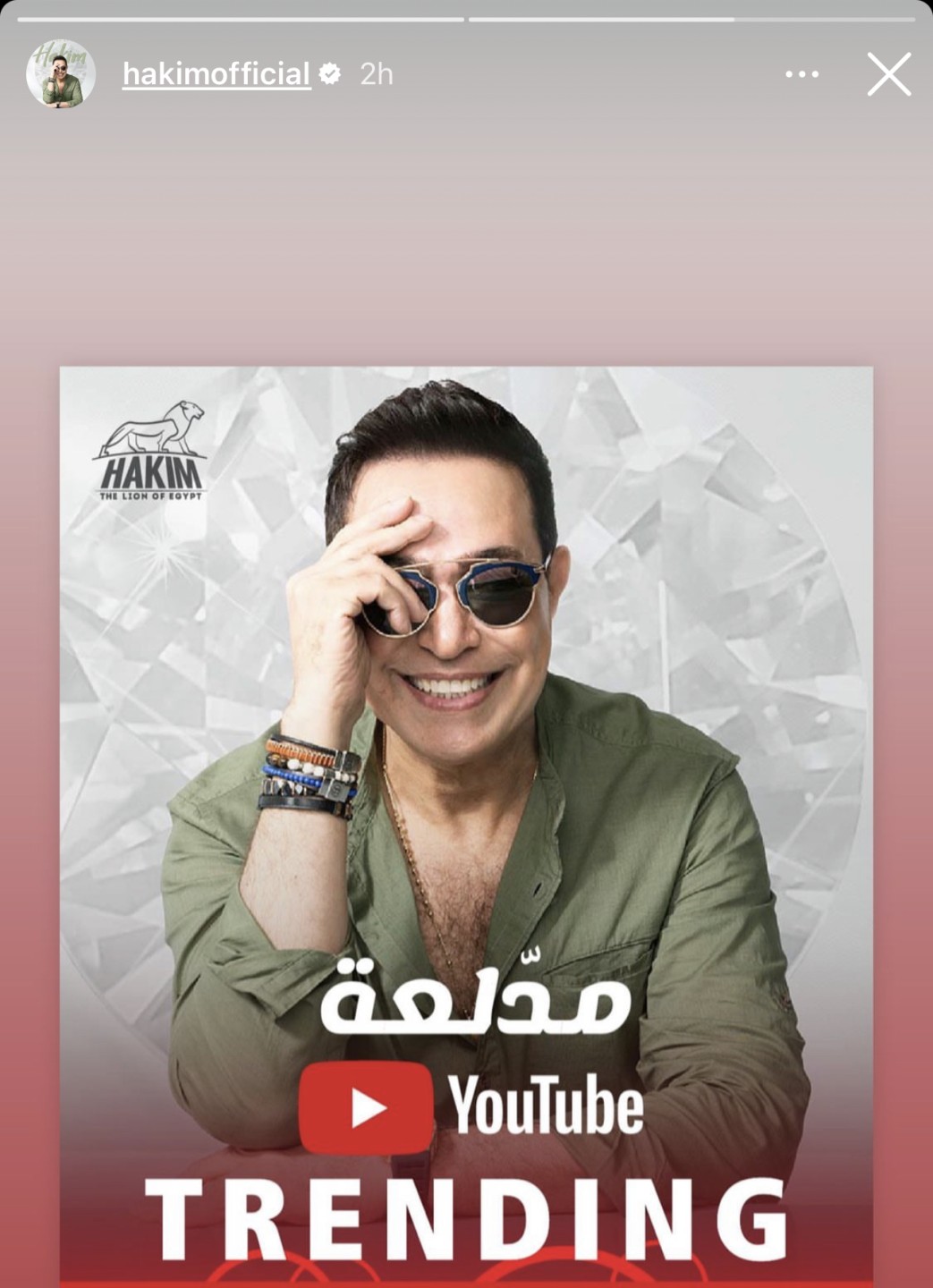374 مشاهدة لأحدث أغاني حكيم «مدلعة» وتتصدر يوتيوب