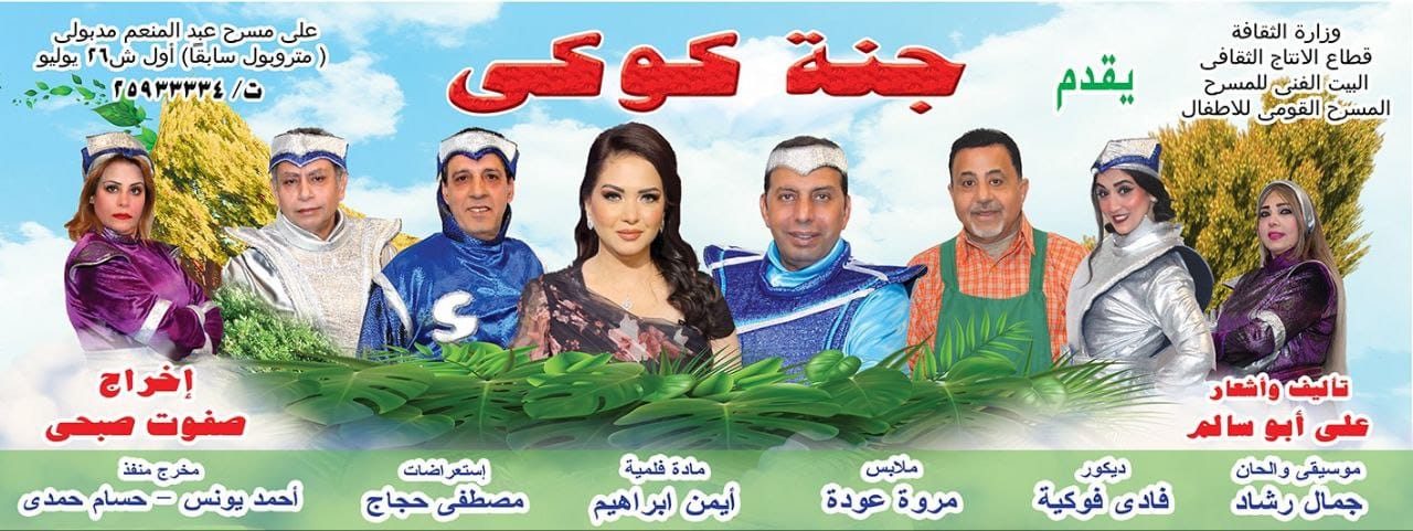 "جنة كوكى" بطولة بثينة رشوان، جلال عثمان، محمود حسن، كمال زغلول، موني، شيماء عبد الناصر، نادية الشويخ، ومجموعة من أطفال ورشة مواهب مصر، ديكور فادي فوكيه، أزياء مروة عودة، ألحان جمال رشاد، استعراضات مصطفى حجاج ، ماده فيلمية أيمن إبراهيم.