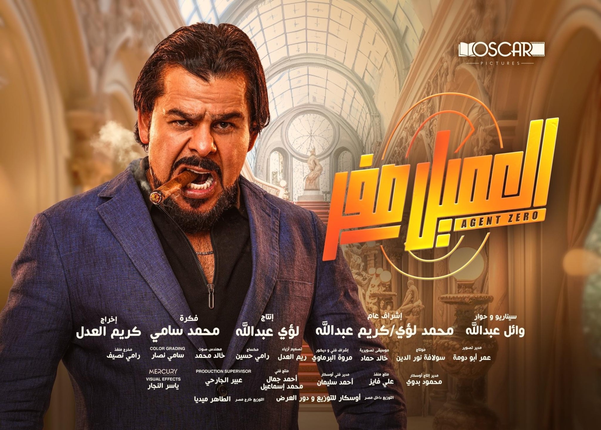 فيلم العميل صفر، بطولة أكرم حسني، بيومي فؤاد، أسماء أبو اليزيد، منذر رياحنة، فيدرا، إسماعيل فرغلي وأيمن الشيوي وأيمن طعمة، العمل فكرة أكرم حسني، وسيناريو وحوار وإنتاج وائل عبدالله، ومن إخراج كريم العدل.