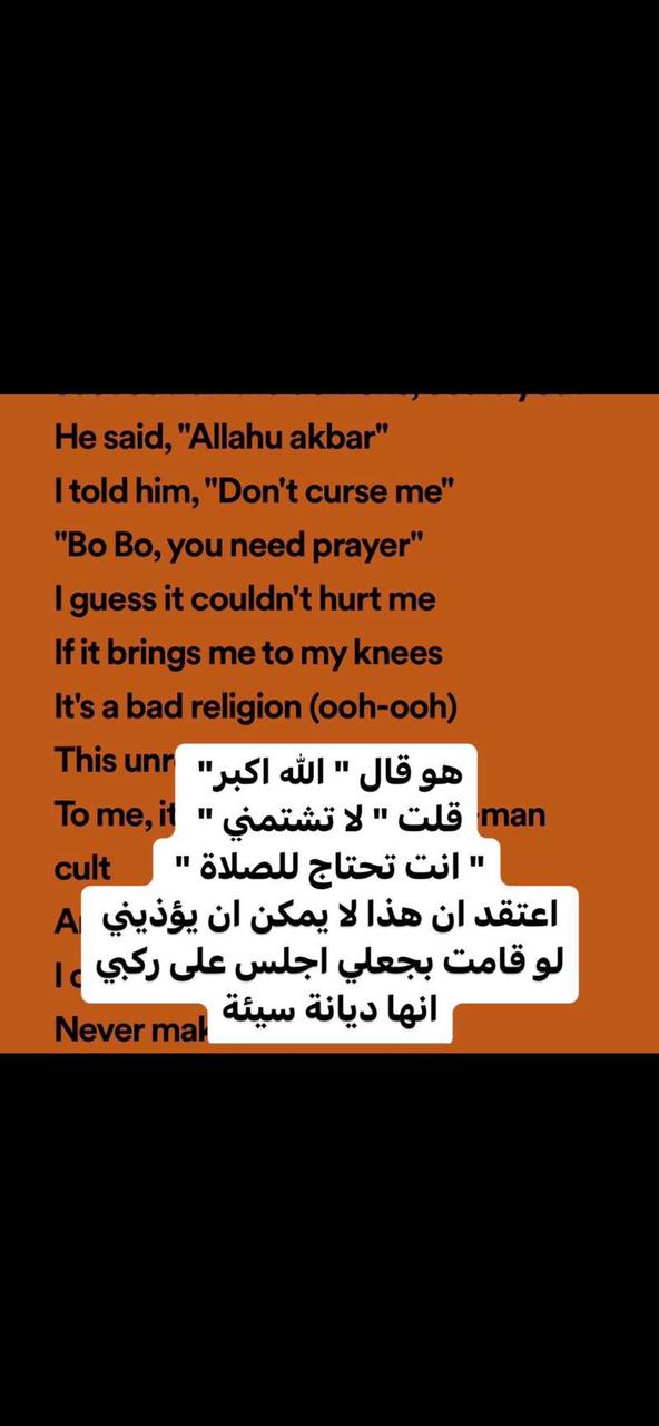 لكن يبدو أن الكثير يجد هذا معاديا للاسلام خاصة، والآن المغني ذكر bad religion وليس Bad religions في إشارة إلى دين واحد فقط.