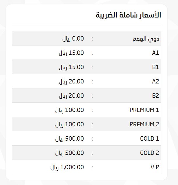 تبدأ أسعار تذاكر مباراة السوبر الإفريقي بين الأهلي واتحاد الجزائر من 15 ريال اي ما يعادل 123 جنيه مصري، وتصل إلى 1000 ريال أي ما يعادل 8221 جنيه مصري.